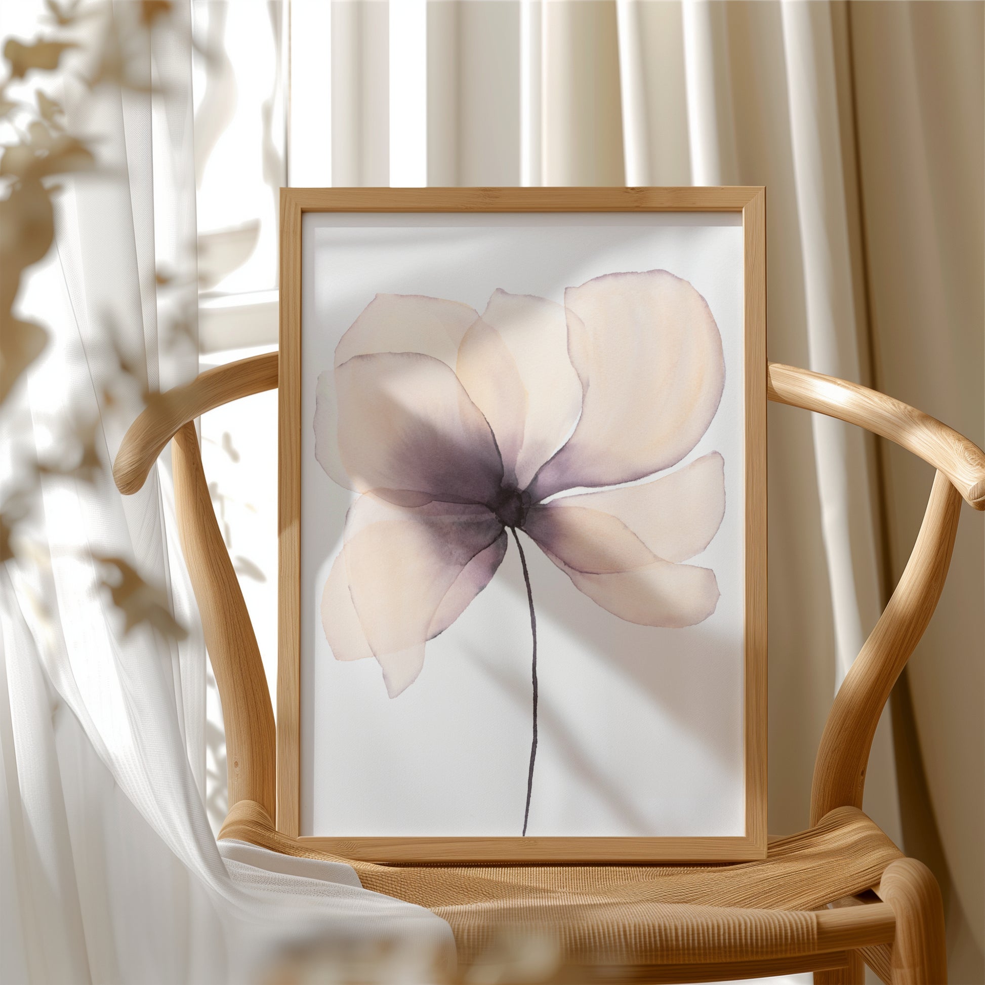 Et akvarelkunstprint baseret på et originalt værk om lethed og det stille i at folde sig ud.