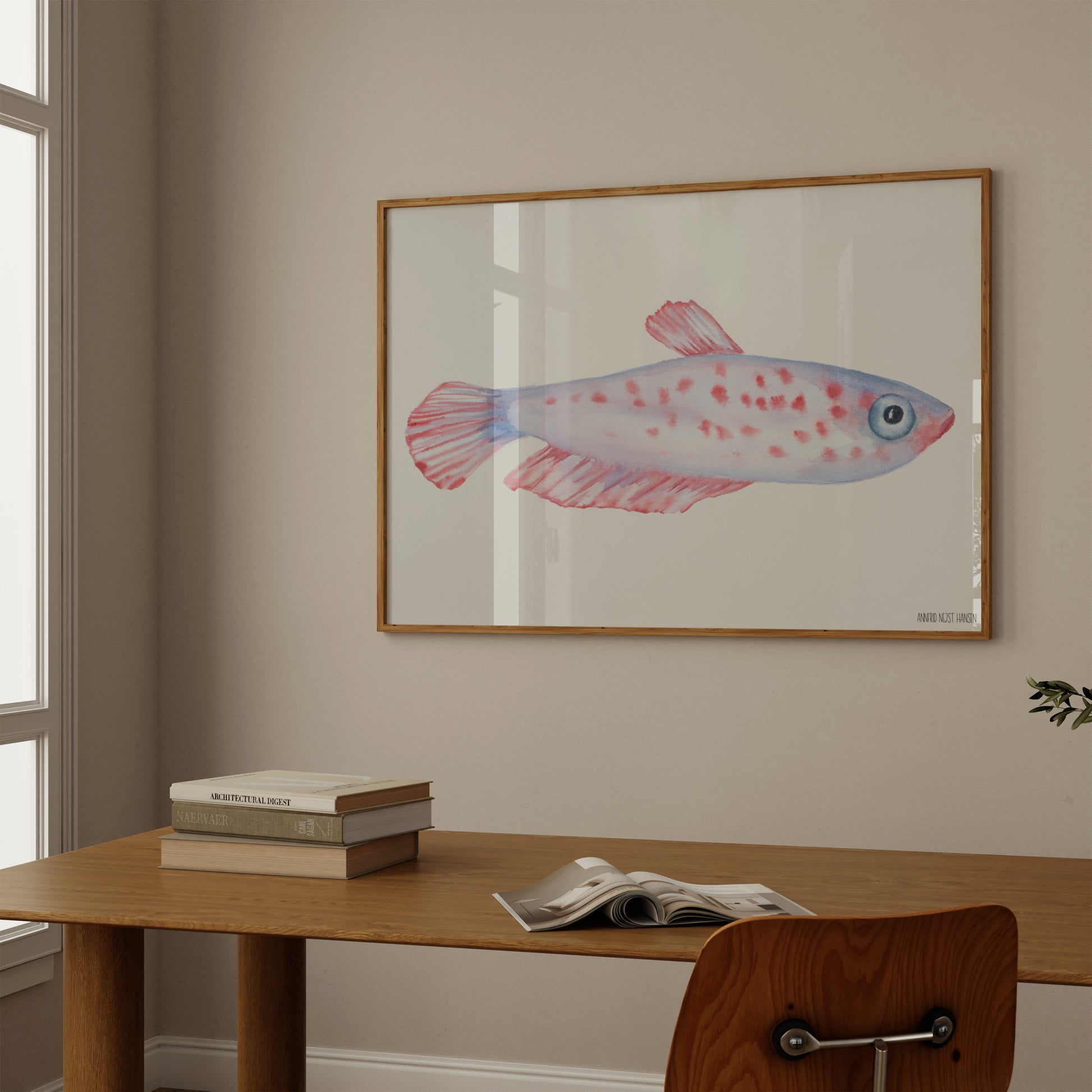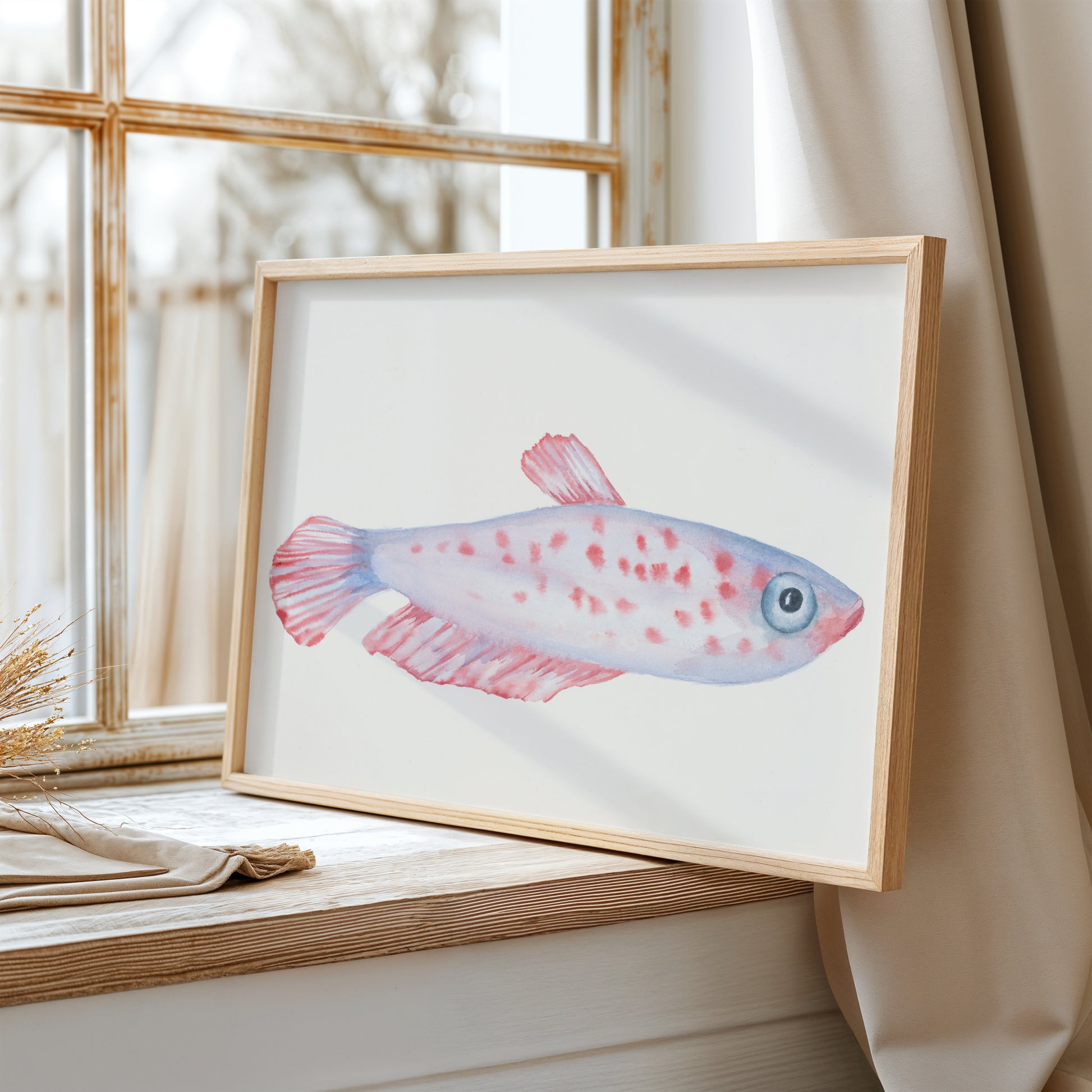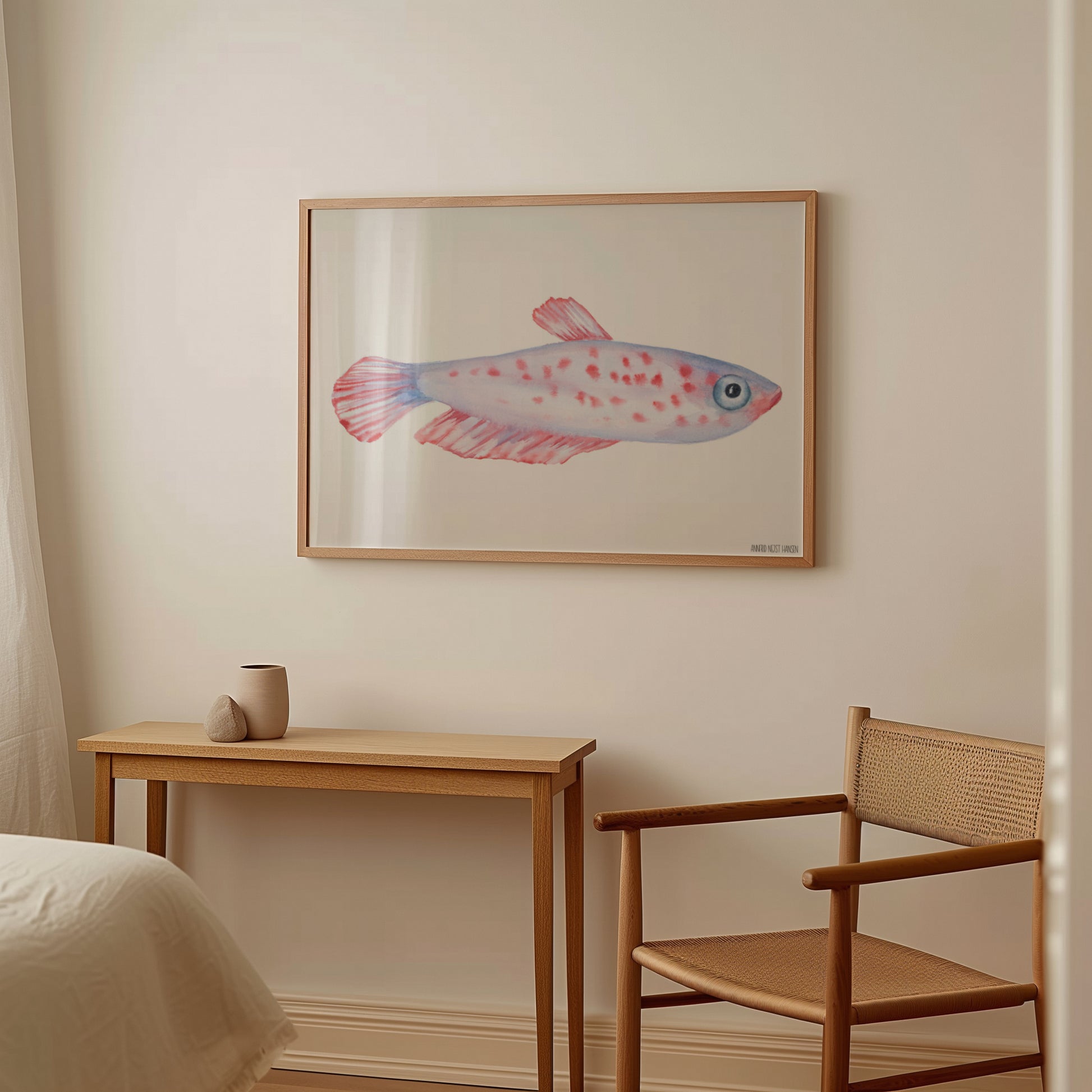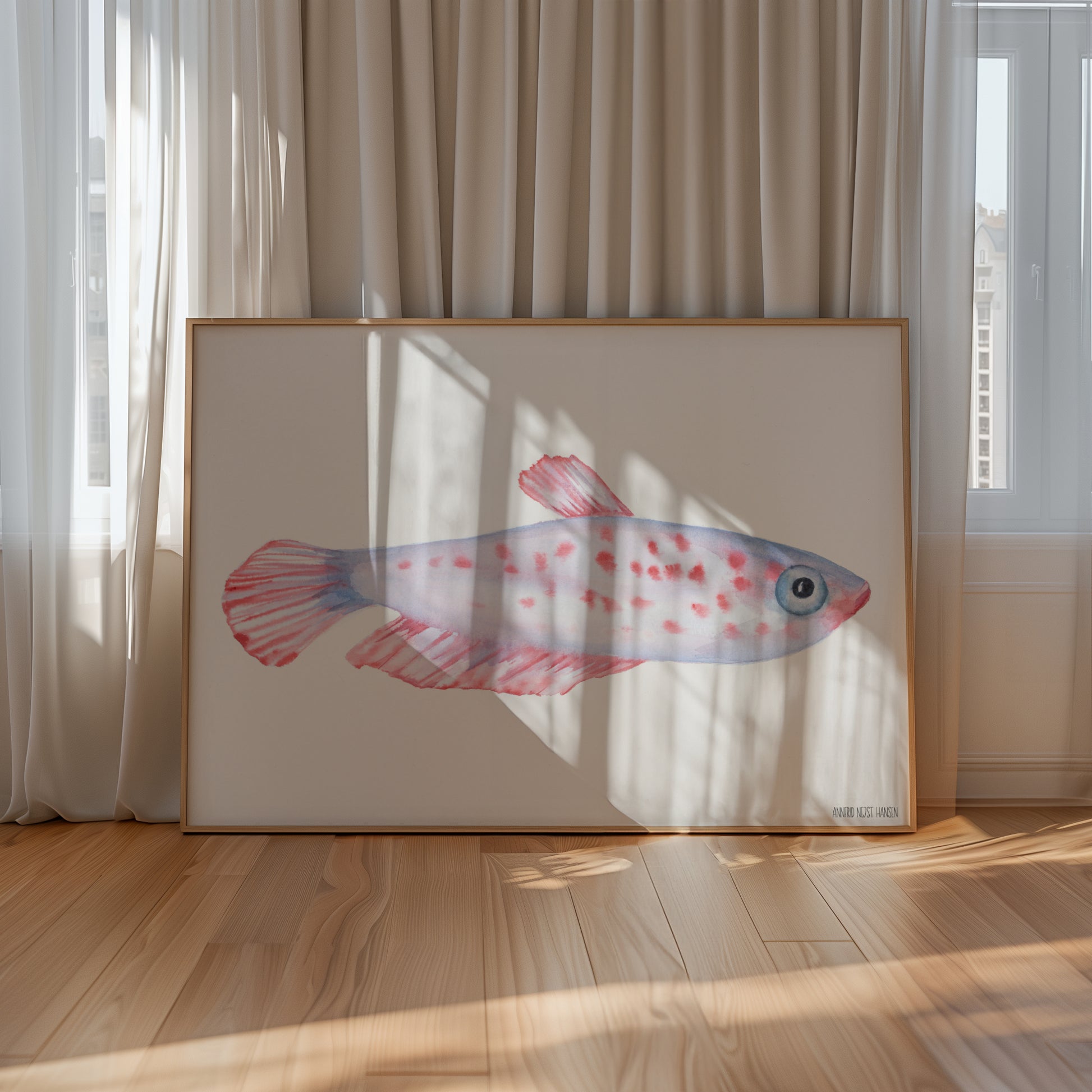 Drift – Fantasy er et kunstprint baseret på et originalt akvarelværk, hvor form og bevægelse flyder frit. De bløde blå og rosa nuancer skaber et drømmende udtryk, der inviterer til fordybelse og stille nysgerrighed.