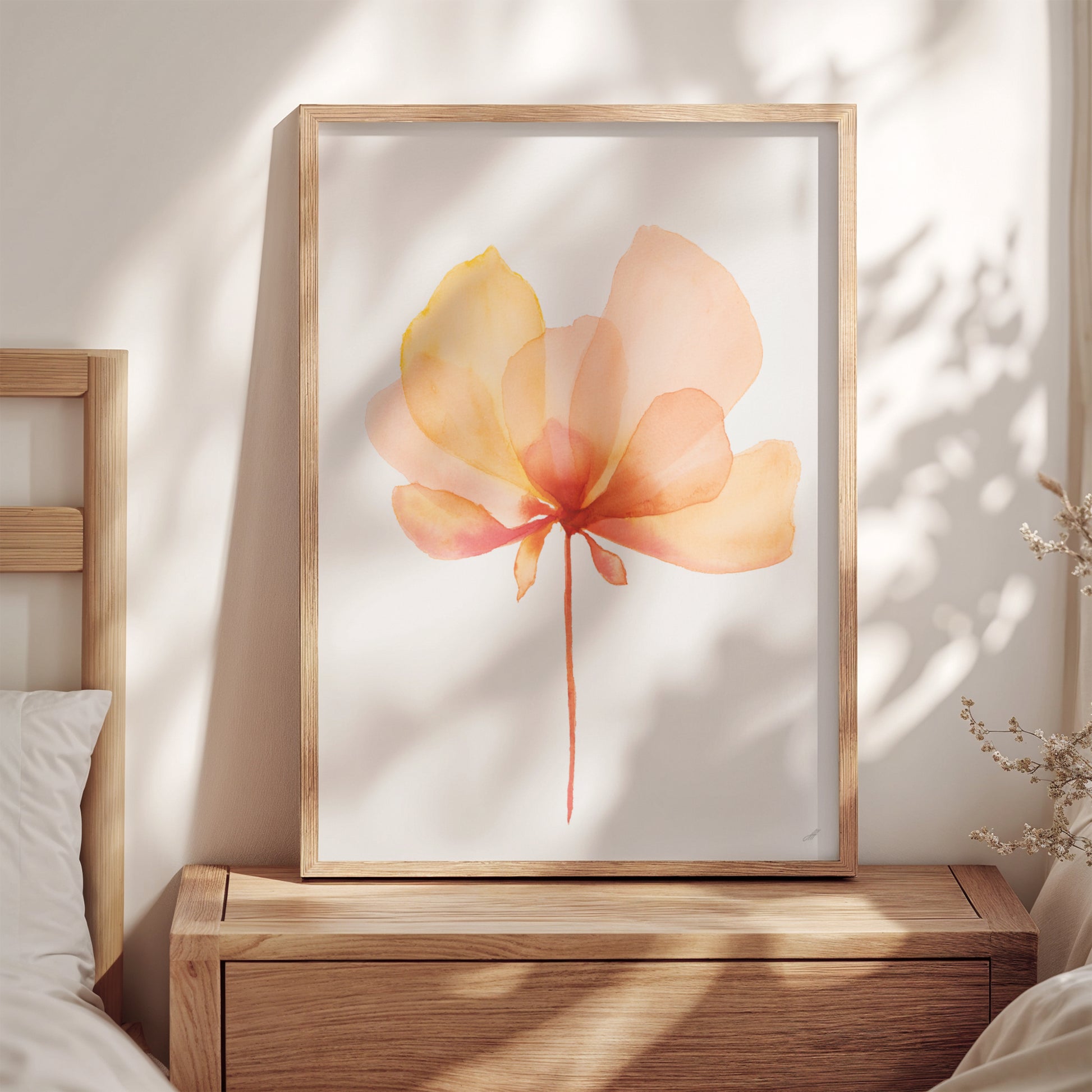 Et akvarelkunstprint baseret på et originalt værk med varme, glødende nuancer og et roligt, sanseligt udtryk.